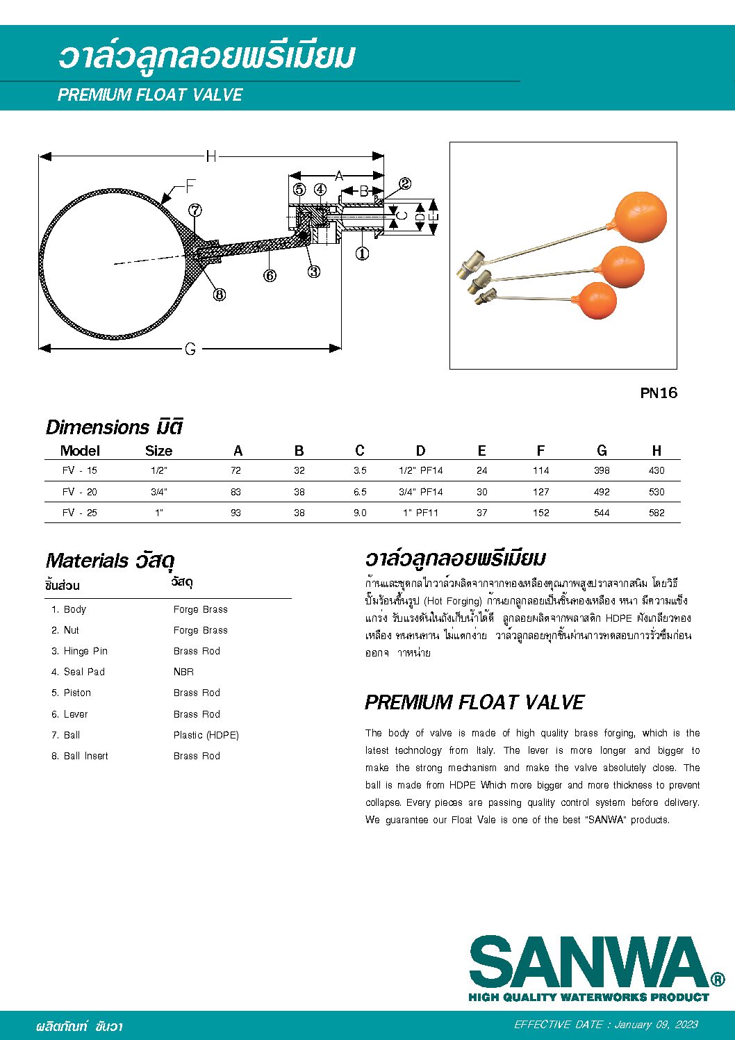 ลูกลอย ซันวา / SANWA FLOAT VALVE