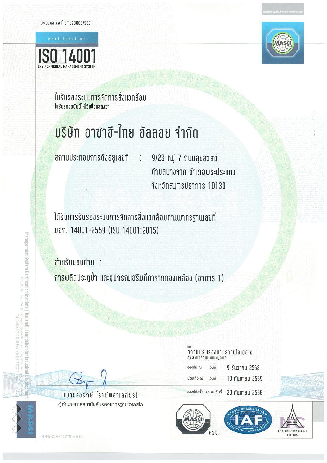 Certificate ISO 14001-2015 (Gate Valve & Accessory)