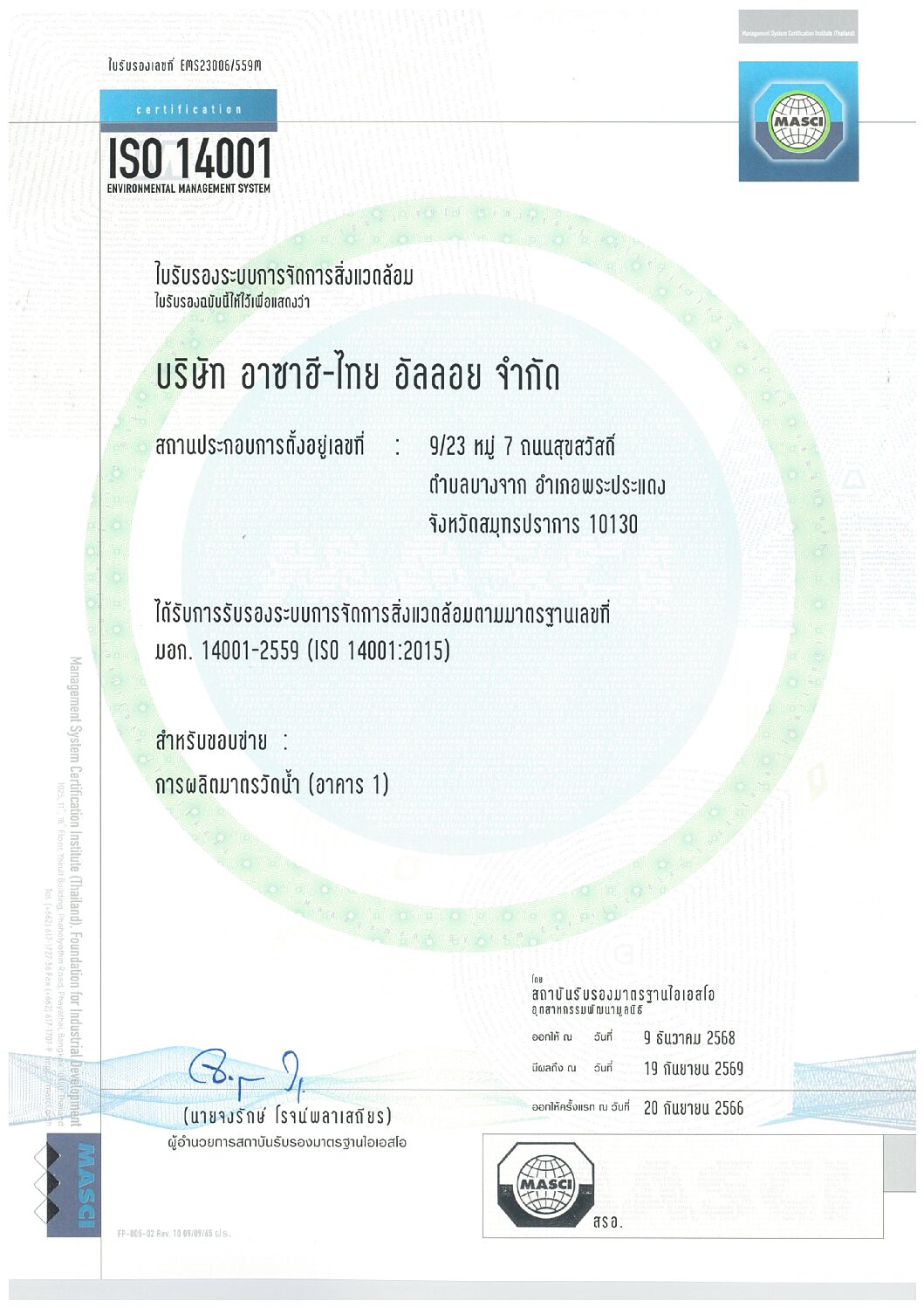 Home / รางวัลการันตี / ISO 14001 / Certificate ISO 14001-2015 (Meter)